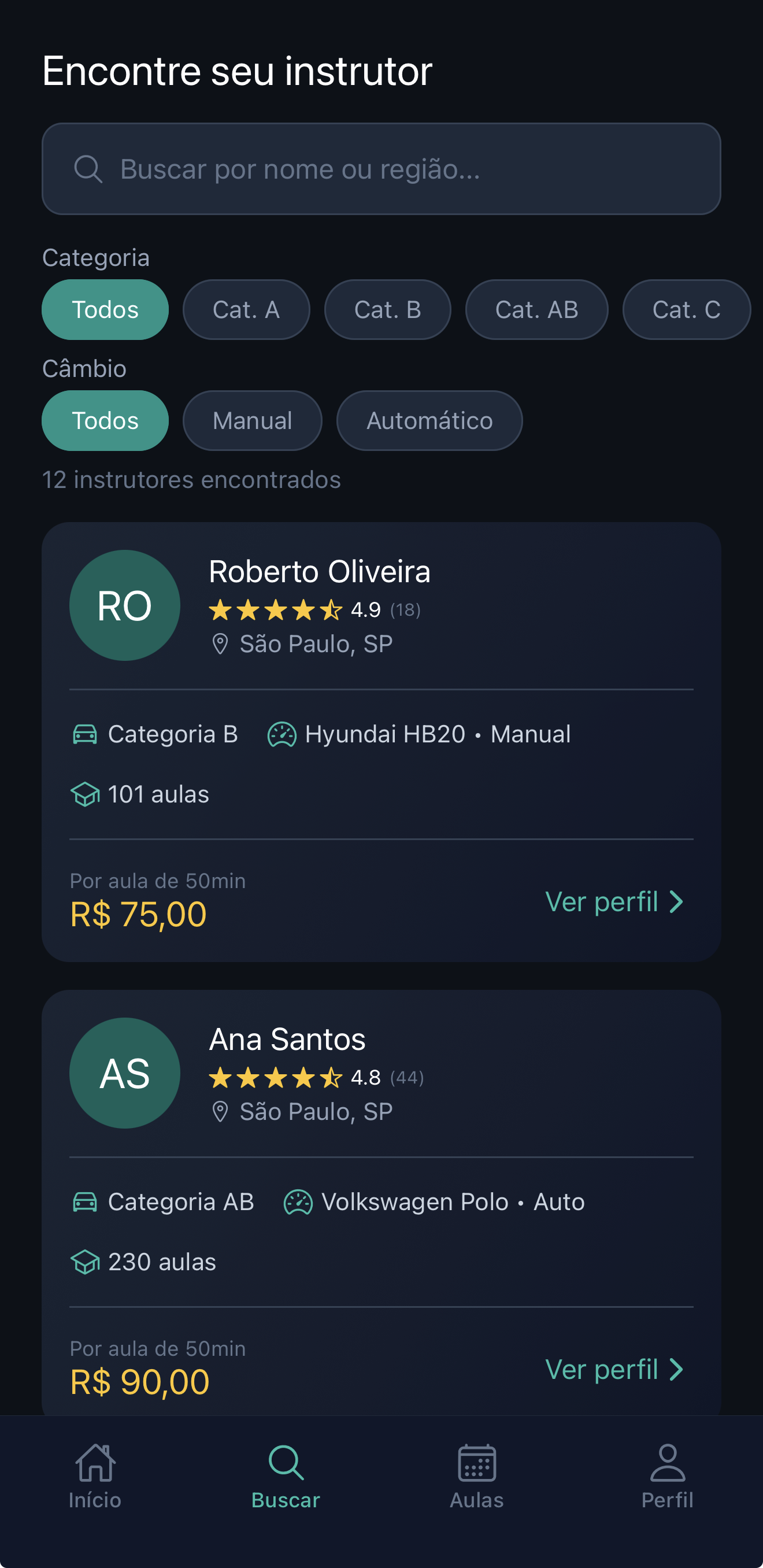 Encontre instrutores credenciados perto de você. Agende aulas práticas com facilidade e segurança.